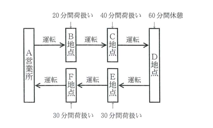 〇B地点で20分間、C地点で40分間、E地点で30分間及びF地点で30分間それぞれ荷扱い
